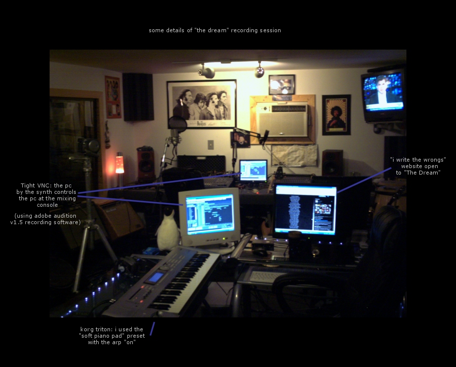 Turns out he writes poetry, and when I read one of his poems called The Dream I thought to myself, “that could be turned into a pretty cool song”. I was sitting by my Korg at the time that had an eerie piano with an arp patch happening, and hit a couple of chords and sang the first line of the poem and went, “whoa” – it happened that easily and that fast.